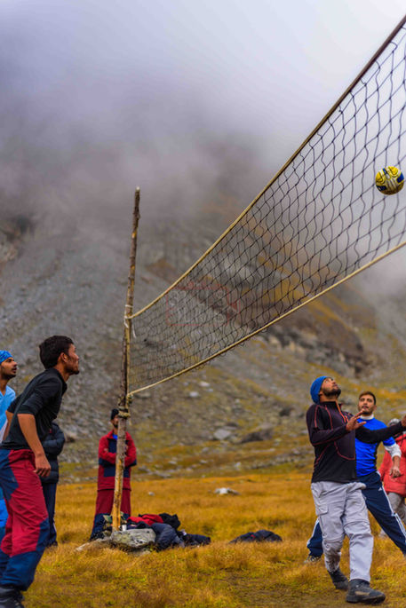 Images from a Photo story contributed to Red Bull based on the game of volleyball at the advance base camp of DKD-II (5670M) in NIM Uttarkashi's Advance Mountaineering Course. All images shot by Chandramauli Singh.